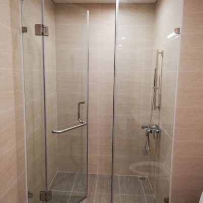 - Phòng tắm kính góc nhỏ giúp tiết kiệm tối đa diện tích nhưng vẫn vô cùng hiện đại. Rất thích hợp với những căn phòng tắm có diện tích vừa phải và nhỏ.